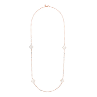 Bronzallure long necklace made of Golden Rosé alloy, 18kt rose gold plated, with cable chain embellished with four étoiles stations (19.5x15.5 mm) in black onyx natural stone or white mother-of-pearl; lobster clasp.